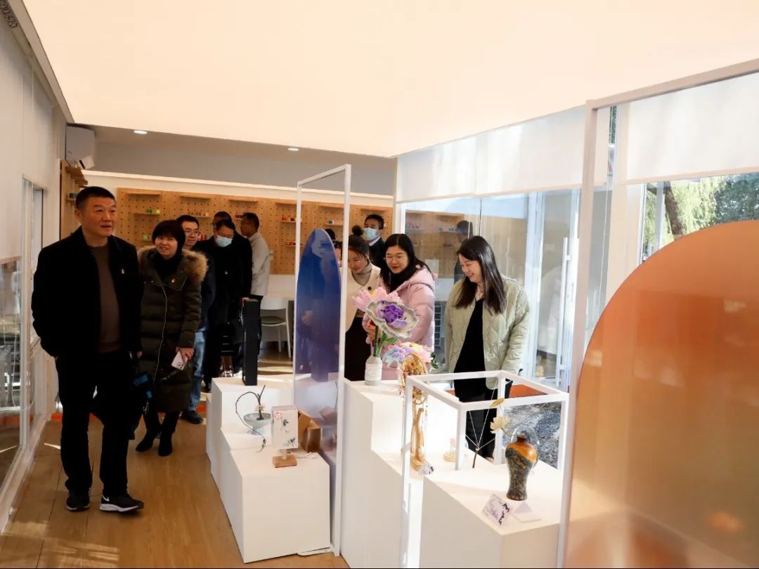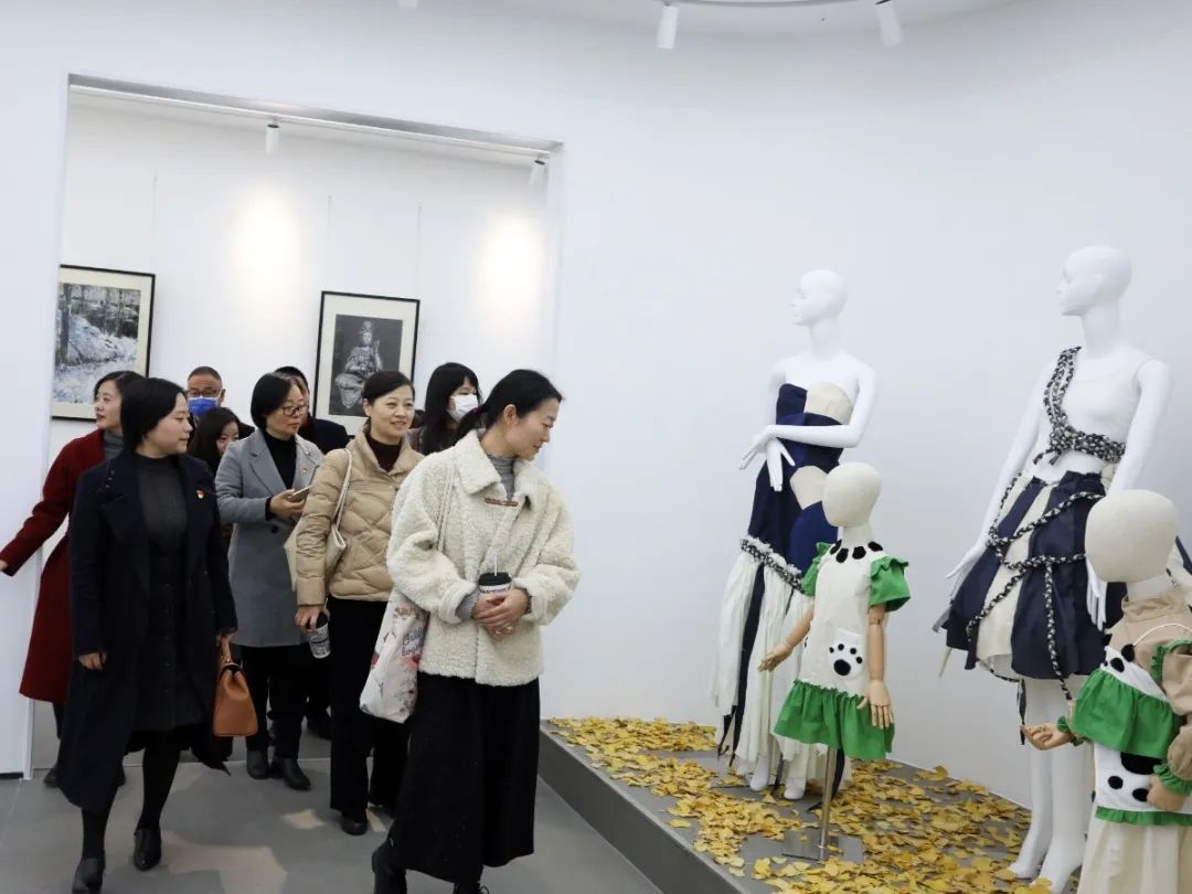 在一爾皮具工作室、工美集裝箱展廳中,韓憶劼老師指導學生設計和制作的皮具飾品、沈亞玲老師指導的學生手工編織作品以及匠心坊中一幅幅精美絕倫漆畫作品,引來眾多贊嘆聲,大家紛紛拍照留念。