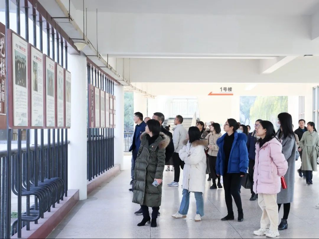 一行人參觀了湖畔之思工作室、黨員活動室、黨建長廊,深入了解藝校“藝心向黨”黨建品牌,以及在黨建工作和文化建設方面所做的努力和取得的成果,并參觀了廉政公園及名師長廊,了解學校清廉文化與黨員教師凝心聚力、發揮先鋒模范作用情況。