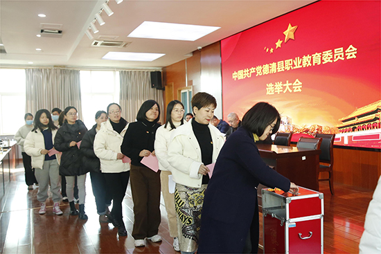 接著,新一屆德清縣職業(yè)教育黨委隨即在小會議室召開了全體委員會議,選舉產(chǎn)生了黨委書記、副書記,并對其他委員進(jìn)行了分工。選舉結(jié)束后,在新一屆黨委班子的領(lǐng)導(dǎo)下,全體黨員一起重溫入黨誓詞,不忘初心使命。