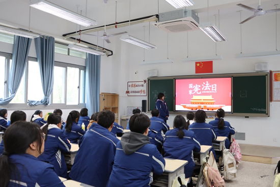 6日下午,各班還以“學憲法 講憲法”為主題開展班會課。傳承、弘揚、創新,各個班級從不同的要點切入,通過觀看視頻、教師講解、學生討論等方式助力學生提高憲法意識、法律意識及社會責任感,在潛移默化中得到精神上的洗禮,思想上的升華。