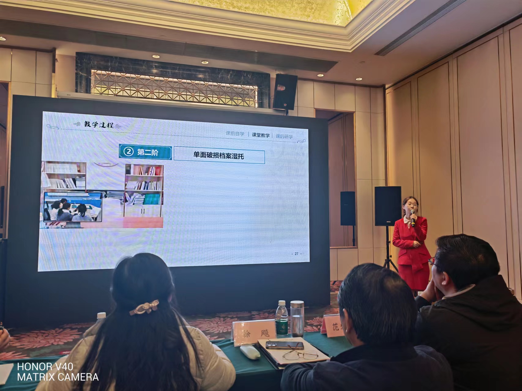 陳夢(mèng)潔,鄞職文秘教師。本次國(guó)賽中,陳老師別有匠心地把本專業(yè)內(nèi)容檔案修裱與非遺信息相結(jié)合,傳統(tǒng)文化與信息技術(shù)實(shí)時(shí)注入課堂,助力課堂高效性。精彩的課堂展示,穩(wěn)健的臺(tái)風(fēng)談吐,征服了現(xiàn)場(chǎng)的每一位評(píng)委,第一名,名至實(shí)歸。