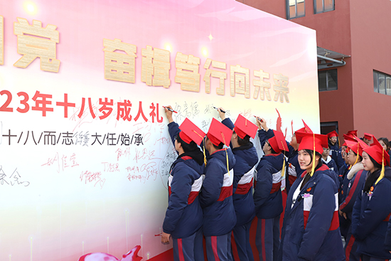 典禮在同學們自信滿滿踏著紅毯跨過成人門的步伐中走向尾聲,他們在感恩勵志成人簽字墻上莊重地簽上自己的名字,秉承興邦責任,書寫新的人生華章。十八歲是一個轉折,青春是最大的浪漫,責任是最好的成長,祝愿所有成年學生在未來盡享少年拼搏之酣暢,再續青春不朽之長歌!