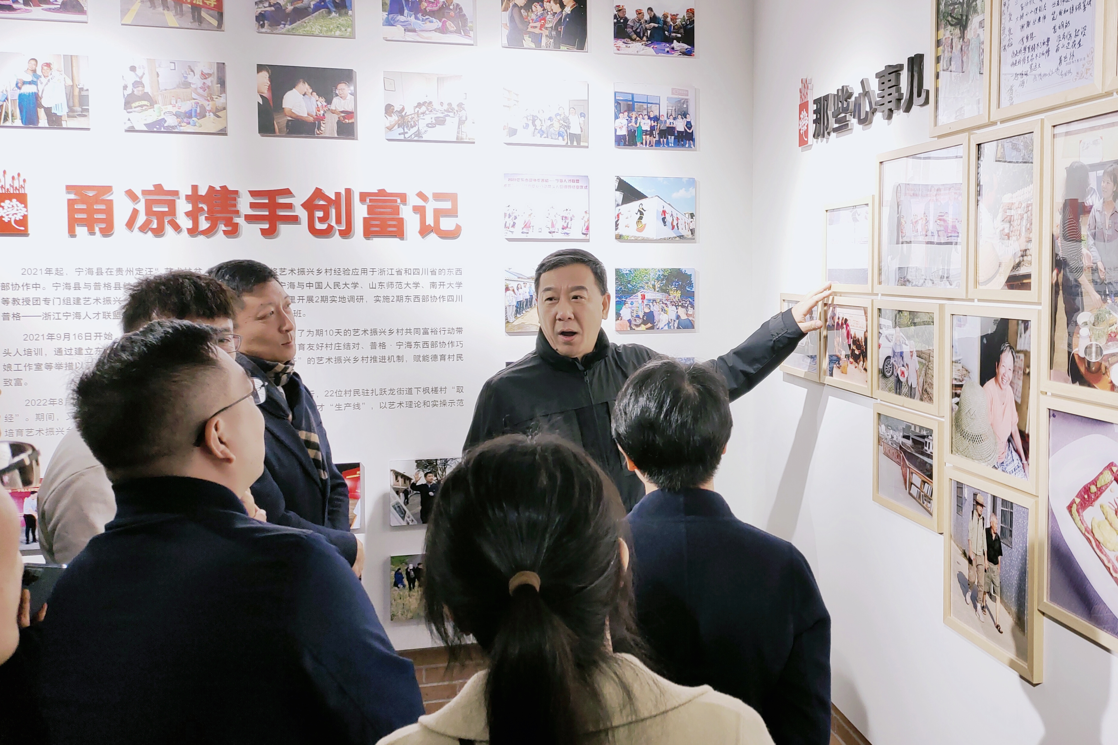 12月9日,中國首批“世界雙一流”建設學校——中國人民大學黨委書記張東剛一行來到寧波市寧海縣藝術創富學院(大佳何成校)調研指導。專家組在寧海縣委副書記方勤的陪同下,參觀了藝術創富學院文化展示廳,了解寧海縣“藝術賦能村民、村民振興鄉村”實踐成果。