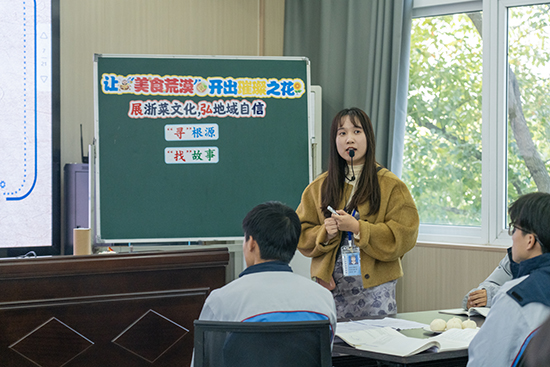 陳紅亞是嘉興市交通學校烹飪專業教師,主要教授中西式面點相關課程。本次主題班會評比中,她帶來的《讓“美食荒漠”開出璀璨之花》主題班會緊扣專業特色,以亞運會上國際友人對中國美食的喜愛為導入,從“尋根源——浙菜的起源”“找故事——講美食典故”“美差事——美食的制作過程”“食百味——品嘗學生制作的糕點”四個環節,展現了浙菜的源遠流長和獨特魅力,培養了同學們對中華美食的自信心和發揚美食文化的責任感。