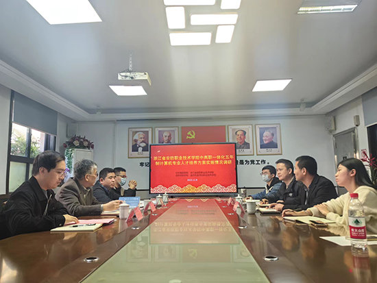 龍灣職技校副校長劉華西對安防學(xué)院一行人的來訪表達(dá)了誠摯的歡迎。他表示,學(xué)校歷來重視中高職一體化人才培養(yǎng)模式的改革創(chuàng)新,本次研討活動既是對過去工作的全面檢驗與總結(jié),更為未來中高職一體化工作描繪了美好藍(lán)圖,期待在安防學(xué)院和學(xué)校的共同努力下,提升學(xué)校輸送至安防學(xué)院學(xué)生的綜合素養(yǎng),推動中高職一體化工作高質(zhì)量發(fā)展,為社會培養(yǎng)出更多高素質(zhì)技術(shù)技能人才、能工巧匠、大國工匠。