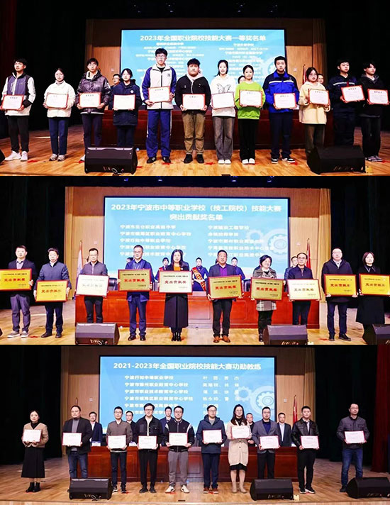近日,第十八屆寧波市中等職業(yè)學(xué)校(技工院校)技能大賽開幕式在寧波市鄞州職業(yè)教育中心學(xué)校舉行。本屆大賽由寧波市教育局、寧波市人力資源和社會保障局、寧波市總工會聯(lián)合主辦,寧波市職業(yè)與成人教育學(xué)院(寧波市職成教研室)承辦,這是一場屬于職教人的盛宴。開幕式上對2023年度技能大賽表現(xiàn)突出的學(xué)校和個人進(jìn)行表彰,鄞州職高再次榮獲“突出貢獻(xiàn)獎”。鄞州職高王志勇書記接過這一沉甸甸的獎項,王書記表示,這個獎項是對鄞州職高在技能大賽中優(yōu)異表現(xiàn)的肯定和表彰,至此,鄞州職高已第12次獲此殊榮,學(xué)校將再接再厲,辦好人民滿意的職業(yè)學(xué)校。