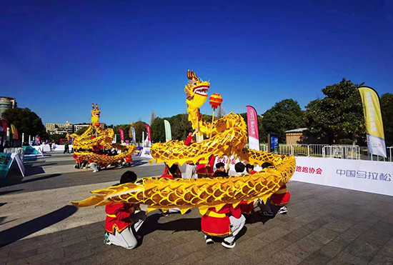 翻滾、跳躍、纏繞……諸暨城市廣場,兩條布龍上下飛舞,引得旁觀者陣陣喝彩。這是由該校二十名學生組成的舞龍表演隊,為2023年諸暨西施馬拉松現場助興。