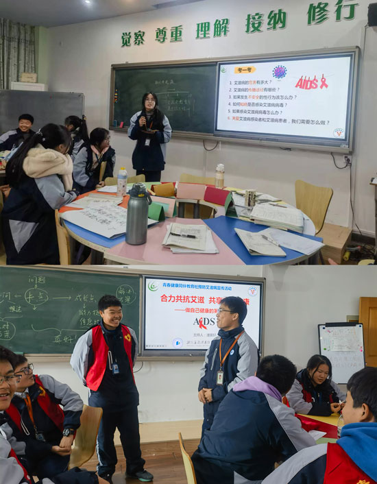 活動中,通過頭腦風暴、疫情報告、科普視頻、提問互動、知識梳理、學習分享等環節和方式,幫助同學們了解艾滋病的致病原理、癥狀、危害、傳播途徑、傳播條件、阻斷藥、檢測方法、積極治療、U=U、有效防治措施等科學知識和信息,提高預防高危行為的安全意識,加強平等、關愛和不歧視艾滋病病毒感染者的觀念。