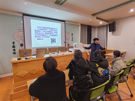 12月19日晚,安吉縣社區教育學院遞鋪分院組織開展收納整理培訓,邀請了家政培訓師蔣素玲老師授課,來自各個村、社區的50余名學員參加培訓。