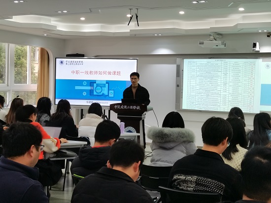 課題研究是提高教師專業(yè)素養(yǎng),提升學校教育教學質(zhì)量的有效途徑。為加強年輕老師們的課題研究意識,提高課題研究水平,促進學校教育科研的發(fā)展,12月15日下午,寧波建設(shè)工程學校開展了青年教師沙龍活動之“中職一線教師如何做課題”,特邀請學校英語教研組長、寧波市教育科研先進個人伍建輝為大家傳經(jīng)送寶。
