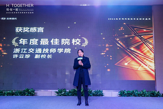 會(huì)上,許云珍作為獲得“年度最佳院校獎(jiǎng)”的學(xué)校代表上臺(tái)分享經(jīng)驗(yàn),許校長(zhǎng)介紹了學(xué)院北京現(xiàn)代項(xiàng)目班的發(fā)展歷程、分享了北京現(xiàn)代班的良好合作經(jīng)驗(yàn),并對(duì)2024年北京現(xiàn)代項(xiàng)目進(jìn)行展望。