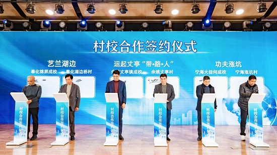 閉幕式上, 奉化區(qū)錦屏街道成人文化技術(shù)學(xué)校與奉化大堰鎮(zhèn)湖邊橋村的“藝蘭湖邊”等3個校村合作項目進行了現(xiàn)場簽約。校村合作項目,將引入優(yōu)質(zhì)教育資源,為寧波市鄉(xiāng)村發(fā)展注入新的活力。奉化區(qū)大堰鎮(zhèn)湖邊橋村王安君書記告訴筆者,“簽約儀式雖說是一種儀式,但我認為更是一種責(zé)任,對我們湖邊橋村來說今天的簽約是吹響鄉(xiāng)村振興啟動的號角,回去后我們會抓緊落實‘藝蘭湖邊’項目,將策劃案中的一個個支項目變成一幅幅鄉(xiāng)村美景,變成一戶戶村民增收之渠和村級集體經(jīng)濟增長的助推器。”