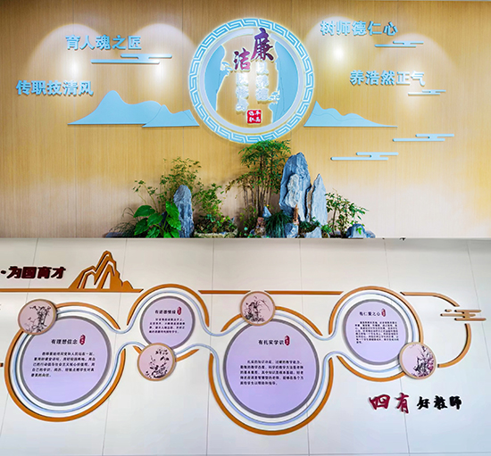 聚焦文化引領,把廉潔教育融入校園文化、師德師風。傳承墨子文化。秉承“兼愛非攻、尚賢使能”的辦學理念,完善提煉“一訓三風”,培育具有現(xiàn)代工匠氣質、自律自強自廉的“墨潤清匠”。筑牢清廉陣地。打造“墨尚”清廉專欄、“墨潤”文化長廊、“墨創(chuàng)”實踐基地等清廉教育陣地3個,黨員陣地5個。建設優(yōu)良作風。扎實做好“一承諾二踐行三反饋”師德師風專題教育,持續(xù)推進正風肅紀檢查,全年累計開展談心談話80余人次。