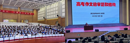 下午,方孝民老師在千人報(bào)告廳為全體高三學(xué)生帶來了一場關(guān)于“高考作文的審題和結(jié)構(gòu)”的講座。從審題到結(jié)構(gòu)布局,方老師以實(shí)例為高三學(xué)生“做一點(diǎn)調(diào)整”,再以一個(gè)“支架”,總結(jié)出“一元”“二元”“三元”的作文結(jié)構(gòu),培養(yǎng)學(xué)生的寫作思辨意識(shí)。
