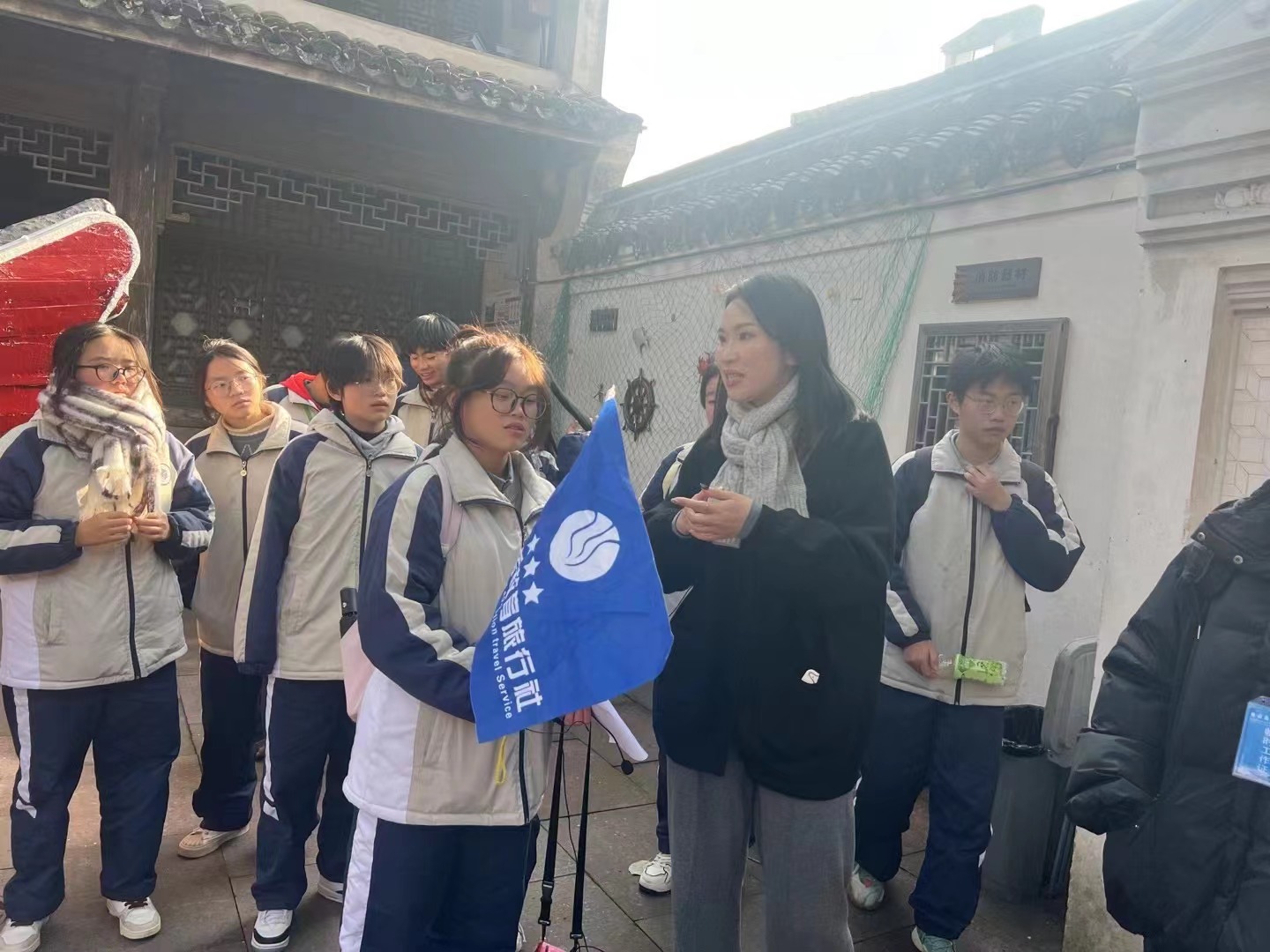 1月3日,寒風凜冽,卻未能減退寧波建設工程學校21導游班的學生們的熱情。他們手執導游旗,佩戴擴音器,跟隨專業老師走進象山影視城和石浦漁港古城親身體驗導游職業的魅力。