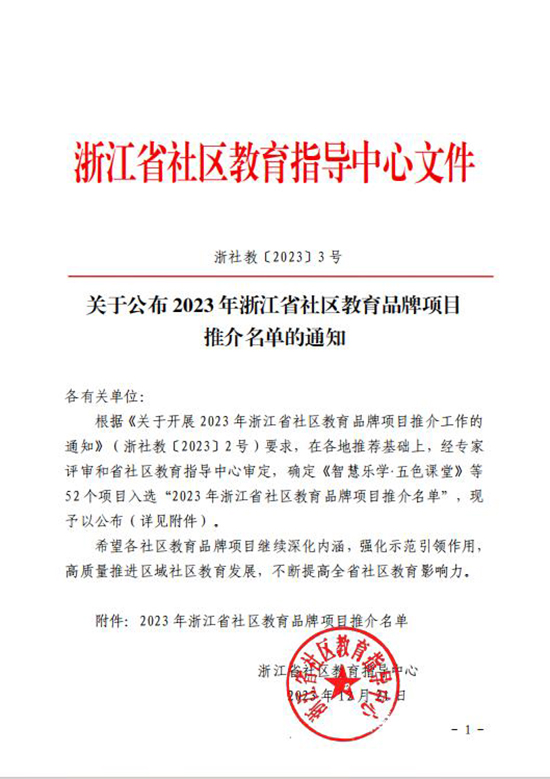 據悉,此次浙江省社區教育品牌項目遴選工作在各地推薦基礎上,經專家評審和省社區教育指導中心審定,全省共確定52個項目入選“2023年浙江省社區教育品牌項目推介名單”。(沈偉林)