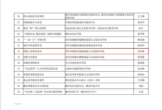 柯橋區漓渚成校園林工匠教育培訓入選浙江省社區教育品牌項目推介名單