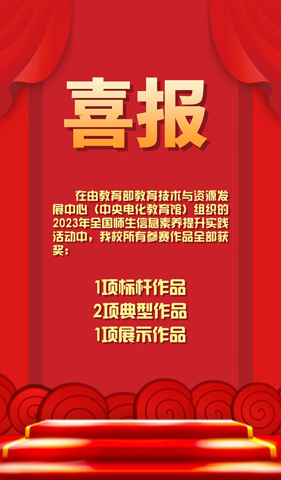 在由教育部教育技術(shù)與資源發(fā)展中心(中央電化教育館)組織的2023年全國師生信息素養(yǎng)提升實踐活動中,浙江信息工程學校·湖州工程技師學院所有參賽作品全部獲獎:1項標桿作品,2項典型作品,1項展示作品。