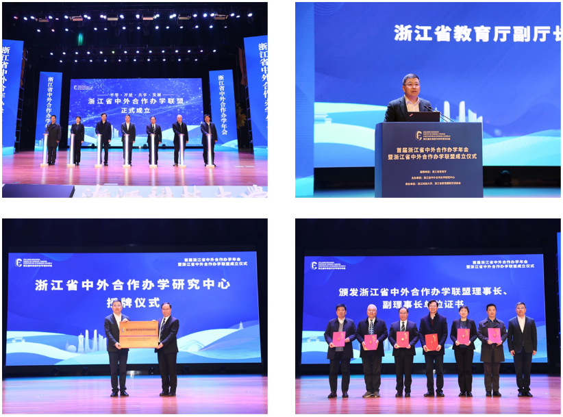 會上舉行了浙江省中外合作辦學研究中心授牌儀式和浙江省中外合作辦學聯盟成立儀式。中外合作辦學研究中心、浙江大學國際聯合學院(海寧)、寧波諾丁漢大學、溫州肯恩大學代表作主旨報告。