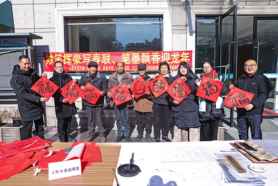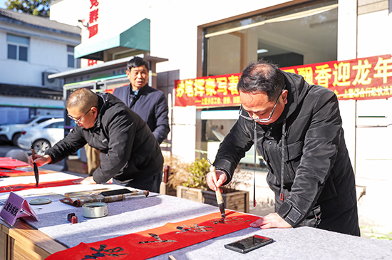 “妙筆揮毫寫春聯,筆墨飄香迎龍年”,為弘揚中華民族優秀傳統文化,豐富轄區群眾的文化生活,營造喜慶祥和的節日氣氛,1月23日上午,安吉縣社區教育學院上墅學習中心會同上墅鄉幸福鄰里在葉南老師、汪華忠老師的帶領下,到上墅村開展寫春聯、寫?;顒?,提前為社區居民們送上龍年春節的祝福。