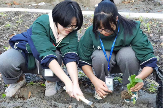 升學部同學雖種植技能還不夠嫻熟,但是不妨礙他們干得熱火朝天,興致盎然,現場充滿火熱的激情。他們興奮地說,當切身感受到勞動的過程時,才真正發覺春生夏長、秋收冬藏是多么美妙的事情,面對土地,只要默默耕耘,時間會給予勞動收獲。這正是“以勞健心”的真正體現。