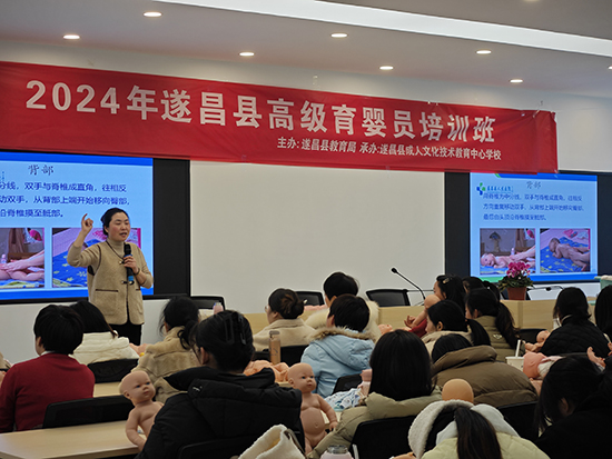1月27日,由遂昌縣教育局主辦的高級育嬰員職業技能培訓火熱開班,全縣公、民辦非在編幼兒園教師、保育員85人報名參加學習。