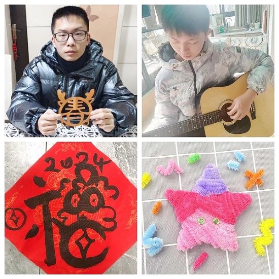 同學們立足日常生活,通過展示包括書法寫福字、貼紙剪窗花、樂器演奏、手工制作、水彩素描畫作等內容在內的個人技能專長,進一步培養興趣愛好,鍛煉動手能力。