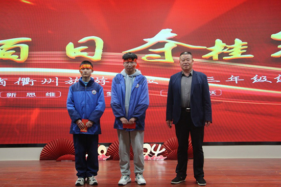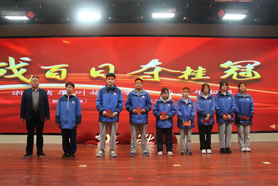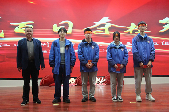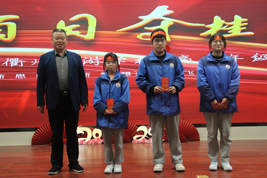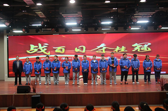 為激勵(lì)學(xué)子們?cè)谧詈蟮陌偬彀l(fā)奮學(xué)習(xí)、勇于進(jìn)取,學(xué)校對(duì)全省第一次聯(lián)合體考試成績(jī)優(yōu)異的同學(xué)們進(jìn)行表彰。校長(zhǎng)助理、教務(wù)處主任江小三宣讀獲獎(jiǎng)名單,黨支部書記、校長(zhǎng)曾福田為獲獎(jiǎng)同學(xué)頒獎(jiǎng)。