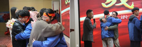 在師生互動(dòng)環(huán)節(jié),教師代表和學(xué)生代表的手緊握在一起。學(xué)生們真誠(chéng)地告白:“老師,我的目標(biāo)是……我一定會(huì)努力,我說到做到!”教師們則回以鼓勵(lì)的擁抱和真誠(chéng)的祝福。