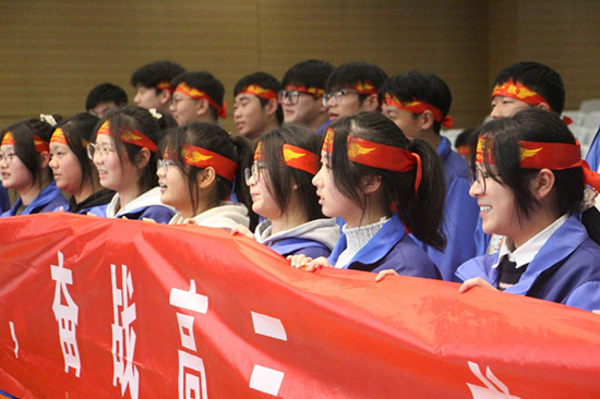 隨后,在悠揚(yáng)的音樂聲中,大家共同穿越未來,暢想收到大學(xué)錄取通知書、走進(jìn)大學(xué)生活的美好時(shí)刻。劉老師帶領(lǐng)同學(xué)們共同尋找那個(gè)最初的自己。隨后,眾多學(xué)生代表在舞臺(tái)上吶喊出自己的夢(mèng)想,并以青春之名宣誓,場(chǎng)面熱血沸騰,激情涌動(dòng)。