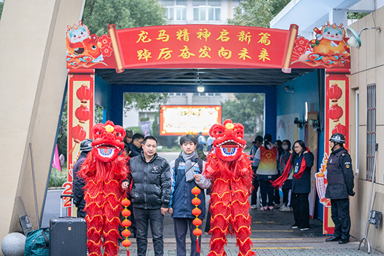 清早,春雪蹁躚賀開(kāi)學(xué),校黨支部書(shū)記、校長(zhǎng)吳曉斌與學(xué)校黨政班子成員,整裝以待,一同在校門(mén)口迎接同學(xué)們的到來(lái)。班主任老師們,精心準(zhǔn)備,在教室等候同學(xué)們的“龍”重登場(chǎng)。交通引導(dǎo)組老師積極引導(dǎo)車輛,確保交通暢通無(wú)阻。學(xué)生會(huì)志愿者身著紅黃色馬甲,在校門(mén)口和寢室樓來(lái)往奔波,協(xié)助同學(xué)搬運(yùn)行李,成為校園內(nèi)一道亮麗的風(fēng)景線。