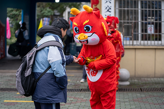 “龍人”送福、“雙龍”迎門(mén),踏著《我們都是追夢(mèng)人》的歌聲,校園內(nèi)熱鬧非凡。班級(jí)里,各班班主任將班級(jí)布置一新,創(chuàng)意滿滿。有的紅包“上墻”,里面裝的是對(duì)同學(xué)們的滿滿祝福;有的掛滿糖果,讓到校的同學(xué)嘗到第一口甜;有的放置diy可樂(lè)墻,寫(xiě)滿了新學(xué)期對(duì)同學(xué)們的希冀與祝福。黑板上,一條條中國(guó)龍或威武霸氣,或可愛(ài)呆萌,將龍年的節(jié)日氛圍延續(xù)。來(lái)到教室的同學(xué)們圍坐一起,互相分享過(guò)年期間的新鮮見(jiàn)聞。