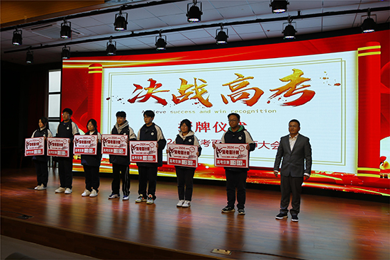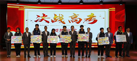 副校長季松青和班主任們為各班授高考目標牌和倒計時牌。