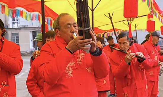 據(jù)了解,諸暨市楓橋鎮(zhèn)“陳家十番”歷史悠久,自南宋以來(lái)就有擊鼓吹簫、撥弄絲弦之風(fēng),屬絲竹鑼鼓中的文十番,由18人組成,打擊樂(lè)器有云鑼?zhuān)ň乓翳專(zhuān)?、檀板、小鑼、彭鼓、撞鈴、木魚(yú);吹奏樂(lè)器有橫笛、洞簫、笙、段管;弦樂(lè)器有二胡、四弦胡、墜胡、琵琶、三弦、雙磬,也有提琴、鐃、鈸、月琴等樂(lè)器調(diào)換。目前能演奏《念佛》《平沙》《纏藤花》《數(shù)羅漢》《梅花三弄》等十多首曲目。為傳承優(yōu)秀文化,助力鄉(xiāng)村振興,文藝隊(duì)舉行巡演儀式,使這一民間藝術(shù)重新進(jìn)入大眾視線。(孫文明)