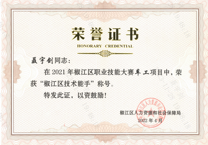 在中職學習期間,他多次代表學校參加數控技能大賽,取得優異成績。大學期間代表學校參加全國三維數字化創新設計大賽獲得“龍鼎獎”浙江賽區一等獎。工作期間勤勉精進,不斷提升個人專業素養和技能水平;團結同事、助力企業創新發展。曾斬獲2021年臺州市數控車職業技能競賽一等獎,并取得數控車工二級/技師職業資格證書;團結同事,努力實現車間現有刀具的更新與改善,提升車間生產20%效率,提升產品合格率20%;同時,他悉心指導、幫助同事實現技能等級提升,助力深化校企合作;發掘企業技能人才,成立技能大師工作室,幫助企業提升生產效能。