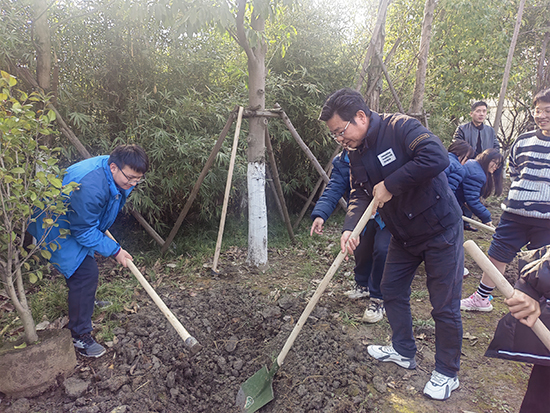 在園林專(zhuān)業(yè)老師的指導(dǎo)幫助下,同學(xué)們?nèi)艘唤M、五人一簇,“除草、挖土、固定、培土、澆水……”植樹(shù)現(xiàn)場(chǎng)一片熱火朝天的景象,處處洋溢著團(tuán)結(jié)協(xié)作、奮發(fā)向上的青春氣息。