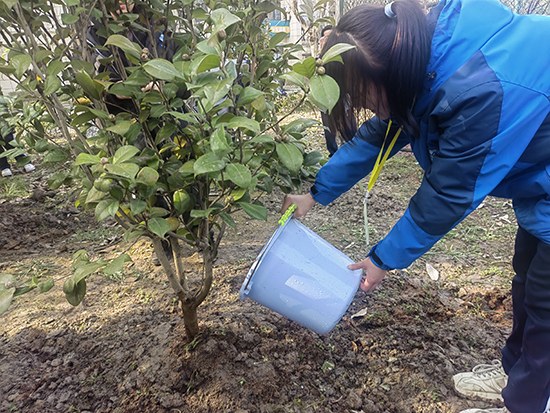活動(dòng)伊始,薛水林向同學(xué)們講述了開(kāi)展本次植樹(shù)活動(dòng)目的和意義。張江為同學(xué)們?cè)敿?xì)介紹了本次植樹(shù)的樹(shù)種——茶花,講解了這種綠植的植物特點(diǎn)和生長(zhǎng)習(xí)性,以及在園林景觀(guān)中發(fā)揮的重要作用。隨后,園林專(zhuān)業(yè)教師曹炳福為同學(xué)們示范樹(shù)木種植過(guò)程,還對(duì)挖土、栽種深度、養(yǎng)護(hù)等方面進(jìn)行了詳細(xì)說(shuō)明。