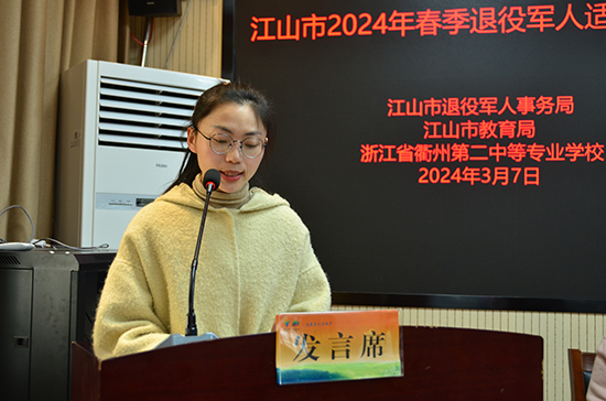 徐凌志致辭,他代表學(xué)校全體師生對(duì)退役軍人的到來表示熱烈的歡迎。他強(qiáng)調(diào),衢州第二中專一直以來都致力于退役軍人的培訓(xùn)工作,學(xué)校緊密結(jié)合退役軍人的實(shí)際需求和特點(diǎn),制定了一系列科學(xué)合理的培訓(xùn)計(jì)劃,確保培訓(xùn)內(nèi)容的針對(duì)性和實(shí)用性。他表示,學(xué)校將充分發(fā)揮自身的教育資源優(yōu)勢,全力做好培訓(xùn)班的各項(xiàng)工作,為退役軍人提供最優(yōu)質(zhì)的培訓(xùn)服務(wù),幫助他們盡快適應(yīng)新的生活與工作環(huán)境。