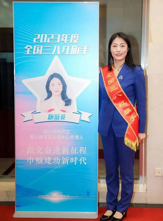 施菊英出生于1977年,是愛心娘子軍公益中心負責人,也是紹興市婦聯兼職副主席。在父親的影響下,施菊英延續了“樂善好施”的家風。2016年,施菊英和幾個姐妹共同組建了“愛心娘子軍”公益中心。