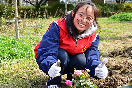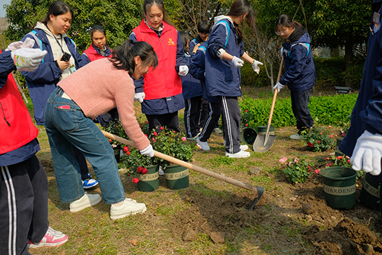 暖陽正好,春風徐徐,同學們在團委老師們的指導下,三五一組,分工合作,配合默契,揮鍬鏟土,提水澆灌。