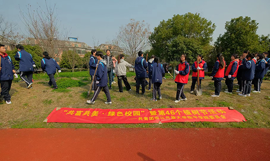 植樹造林,綠化家園,是造福千秋萬代的大事。為深入貫徹黨的二十大精神,深入開展綠化行動,踐行“綠水青山就是金山銀山”理念,不斷加強學生勞動教育。在第46個植樹節到來之際,浙江開放大學臨平學院團委聯合高一、高二年級組和大專年級,以植樹節為契機,開展“共富共美·綠色校園”植樹節主題教育活動。
