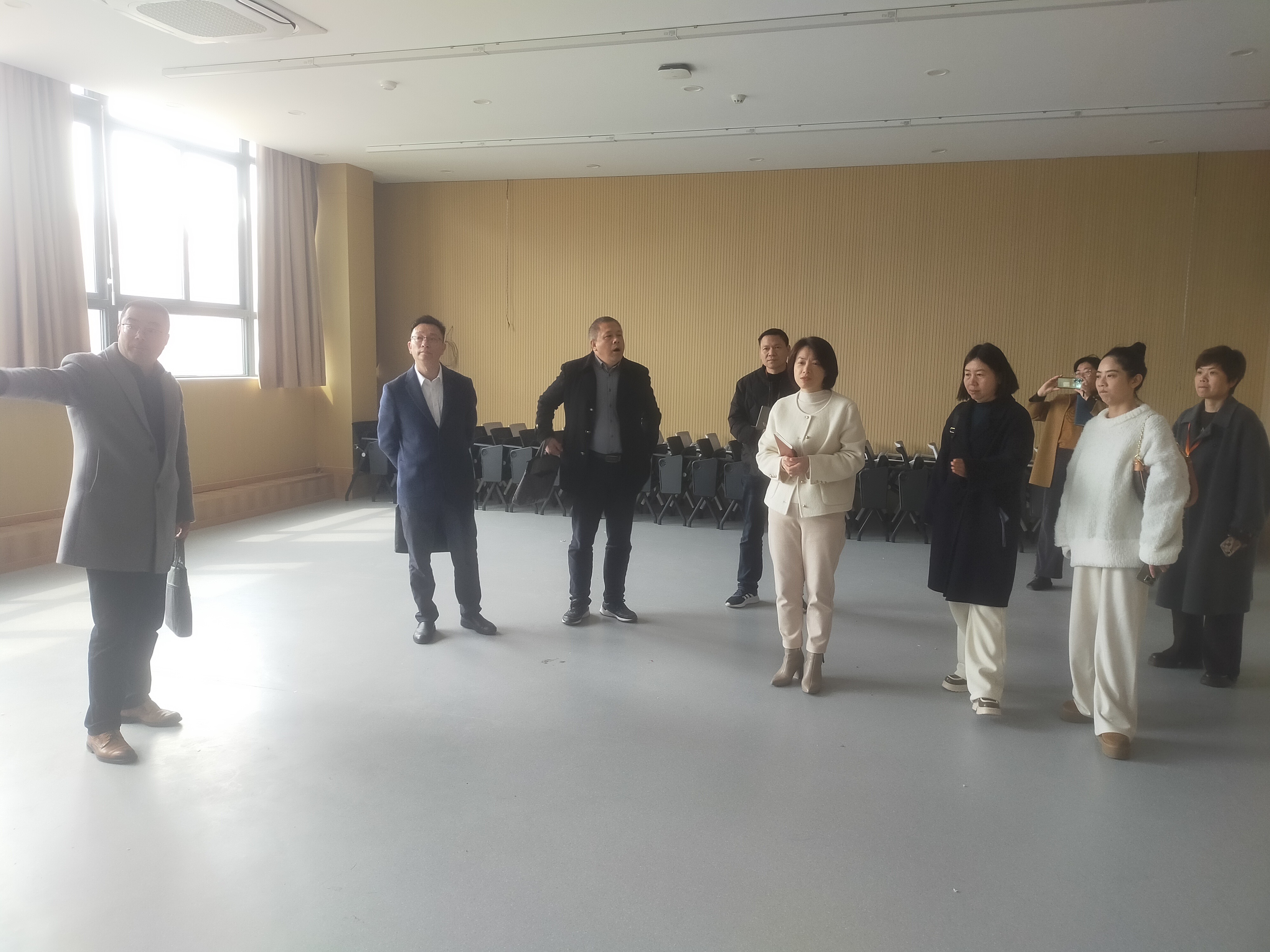座談會前,林建華與葉艷芳一行在洞頭社區學院領導干部的陪同下,參觀考察洞頭區職教中心的藝術樓、體育館等職業技能培訓功能室,針對百島文旅產業培訓對接工作進行實地調研。