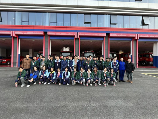 3月12日下午,學生處副處長王宇昕、學生處周嘉俊老師、宿管總教官禹亞雄帶隊攜平安校園服務隊三十余名學生干部走進湖州市濱湖消防救援站,零距離感受消防戰士訓練日常,面對面學習消防安全常識和消防應急處置技能。