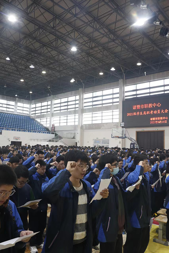 隨后,由21幼師班樓舒涵同學領誓,全體考生起立,右手握拳,以青春的名義,莊嚴宣誓。激情的誓言回蕩在每一個學生的耳畔,激發著他們對高職考的那份執著的態度。
