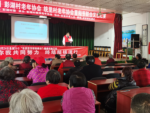 2024年3月24日是第29個“世界防治結核病日”。3月20日下午,安吉社區(qū)教育學院報福學習中心在彭湖村攝湖文化禮堂開展結核病預防專題講座。培訓邀請安吉縣第三人民醫(yī)院呼吸科副主任醫(yī)師周東霞主講,彭湖村52名村民參加培訓。