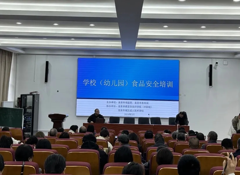 為提升全市校園食品安全總監、食品安全員業務能力,切實保障校園食品安全。近日,由龍泉市教育局、龍泉市市場監督管理局主辦,龍泉青瓷寶劍技師學院(中職校)、龍泉市城區成人技術學校協辦的校園食品安全專項培訓在龍泉市青瓷寶劍技師學院(中職校)順利召開。