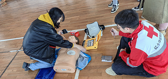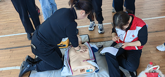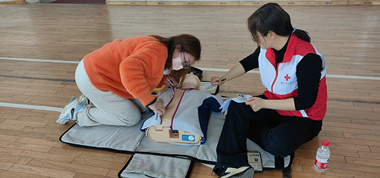 “當身邊意外發生時,掌握必備的急救技能,關鍵時刻能救人一命……”紅十字會講師王寶峰利用PPT,通過淺顯易懂的語言和現場示范、互動的方式,為學員講解紅十字運動知識、救護概念、創傷救護、氣道異物梗阻、心肺復蘇和AED、突發事件和常見意外傷害等方面的知識。