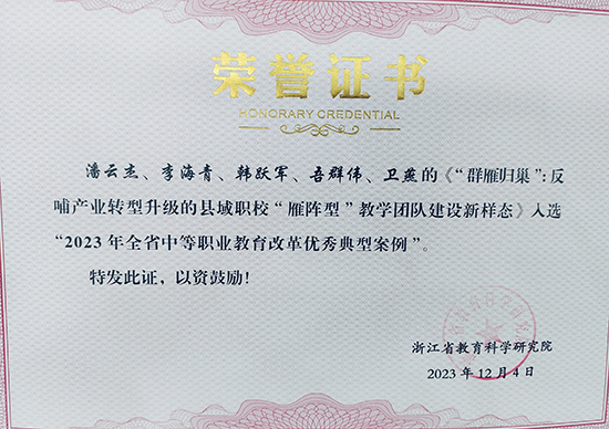3月27日至28日,浙江省職業教育改革典型案例推廣會在寧波第二技師學院隆重舉行。本次推廣會旨在發揮典型案例的示范引領作用,提升職業教育科研品質,宣傳全省職業教育改革優秀成果。2023年省教育改革典型案例共遴選出來自全省的具有創新性、代表性和推廣價值的典型案例94項,海鹽縣理工學校《“群雁歸巢”:反哺產業轉型升級的縣域職校“雁陣型”教學團隊建設新樣態》師資隊伍建設典型案例成功入選浙江省中等職業教育改革優秀典型案例,并被指定參加本次推廣會進行案例展示匯報與交流。