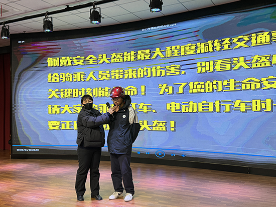 隨后,交通安全宣教人員現(xiàn)場指導(dǎo)應(yīng)當(dāng)如何規(guī)范使用安全頭盔,叮囑同學(xué)們要自覺遵守道路交通安全法律法規(guī),抵制不文明交通行為。