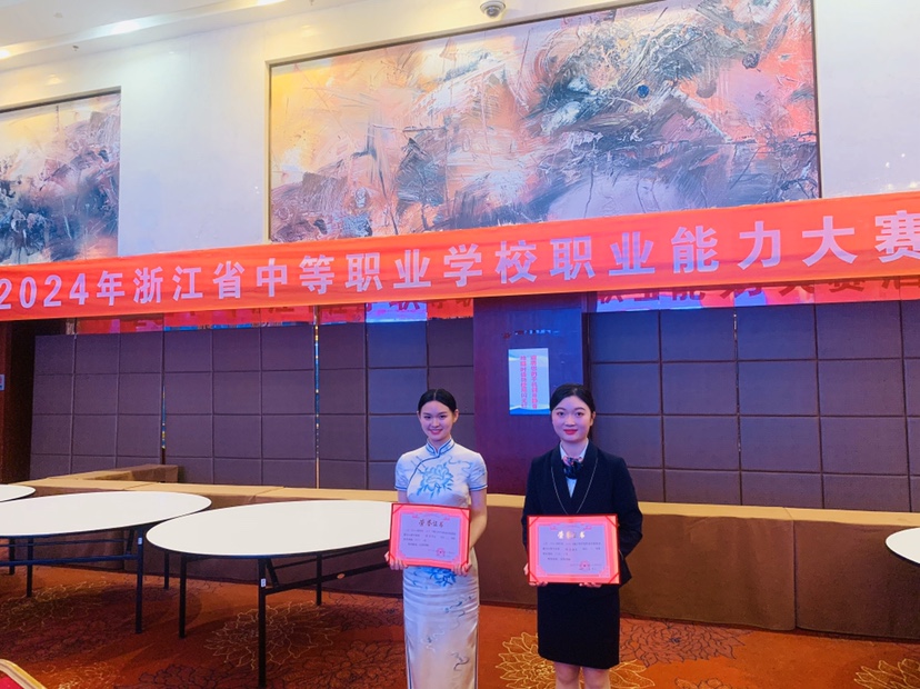 近日,2024年浙江省職業能力大賽中職酒店服務賽項在浙江商業職業技術學院閉幕。紹興選手榮獲省二等獎第一名,他們是來自紹興財經旅游學校王赟、周佳麗同學。